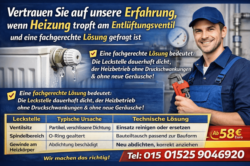 Heizung tropft am Entlüftungsventil ab 58€ | Klempner München
