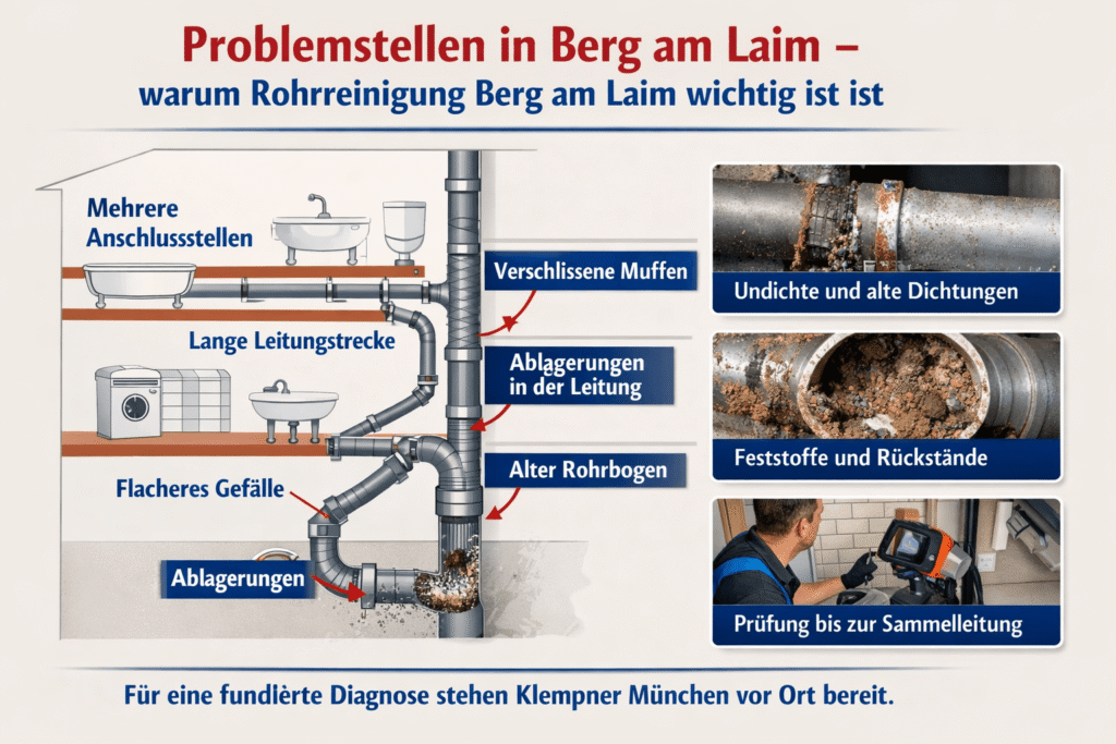 Diese Einordnung erleichtert anschließend die Auswahl der Diagnose, damit nicht „ins Blaue“ gereinigt wird. Für eine klare Bewertung am Standort Berg am Laim kann Klempner München die technischen Hinweise vor Ort strukturiert zusammenführen.