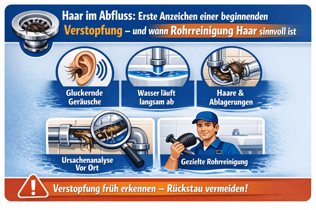 Haar im Abfluss: Welche ersten Anzeichen auf eine beginnende Verstopfung hindeuten – und wann rohrreinigung haar sinnvoll ist