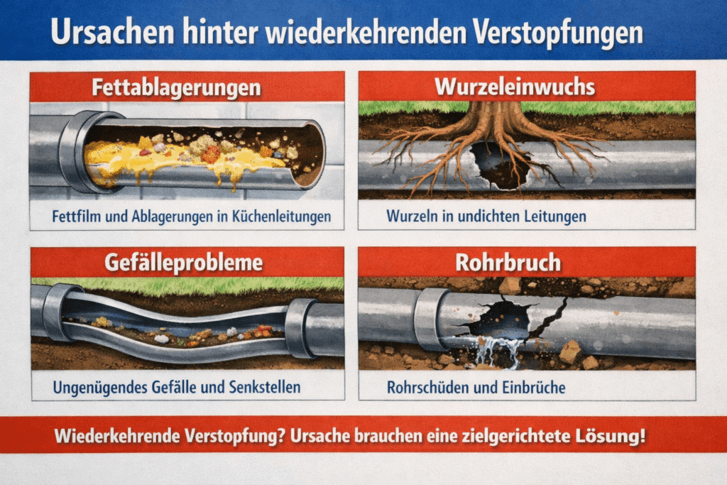 Welche Ursachen hinter wiederkehrenden Verstopfungen stecken – Fett, Wurzeln, Gefälle, Rohrbruch